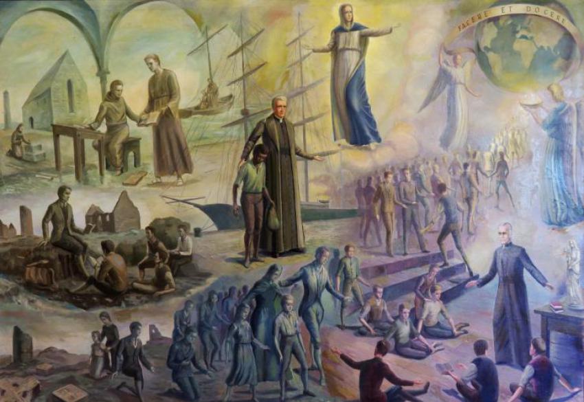 Eventually, the original canvas, a bit worse for age, dismantling and storage, attracted the attention of Brother Raymond Vercruysee, CFC, a Blessed Edmund Rice scholar and former member of the North American Province Leadership Team. He arranged for the movement of the canvas to Bergen Catholic High School in Oradell, New Jersey, commending it to the skilled hands of teacher and master artist, Mr. Nedko Bucev.